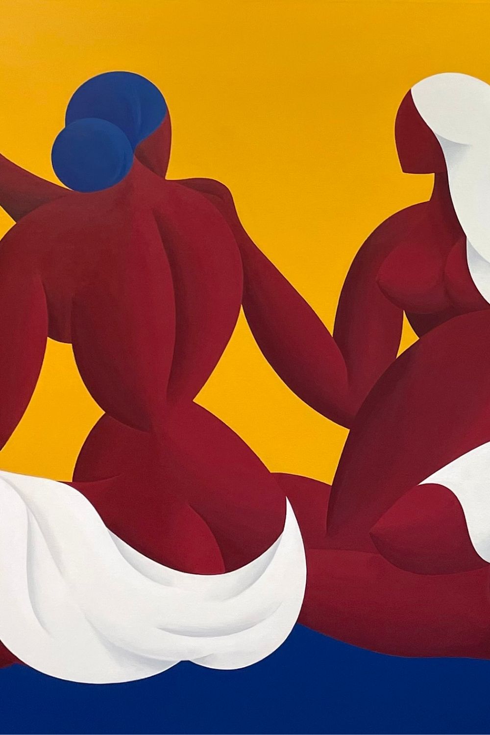 AYT Studio se inspira aquí en la pintura 'Bain de sable' del artista francés Remed , una obra que evoca la complicidad y el vínculo entre las mujeres en las sociedades orientales.