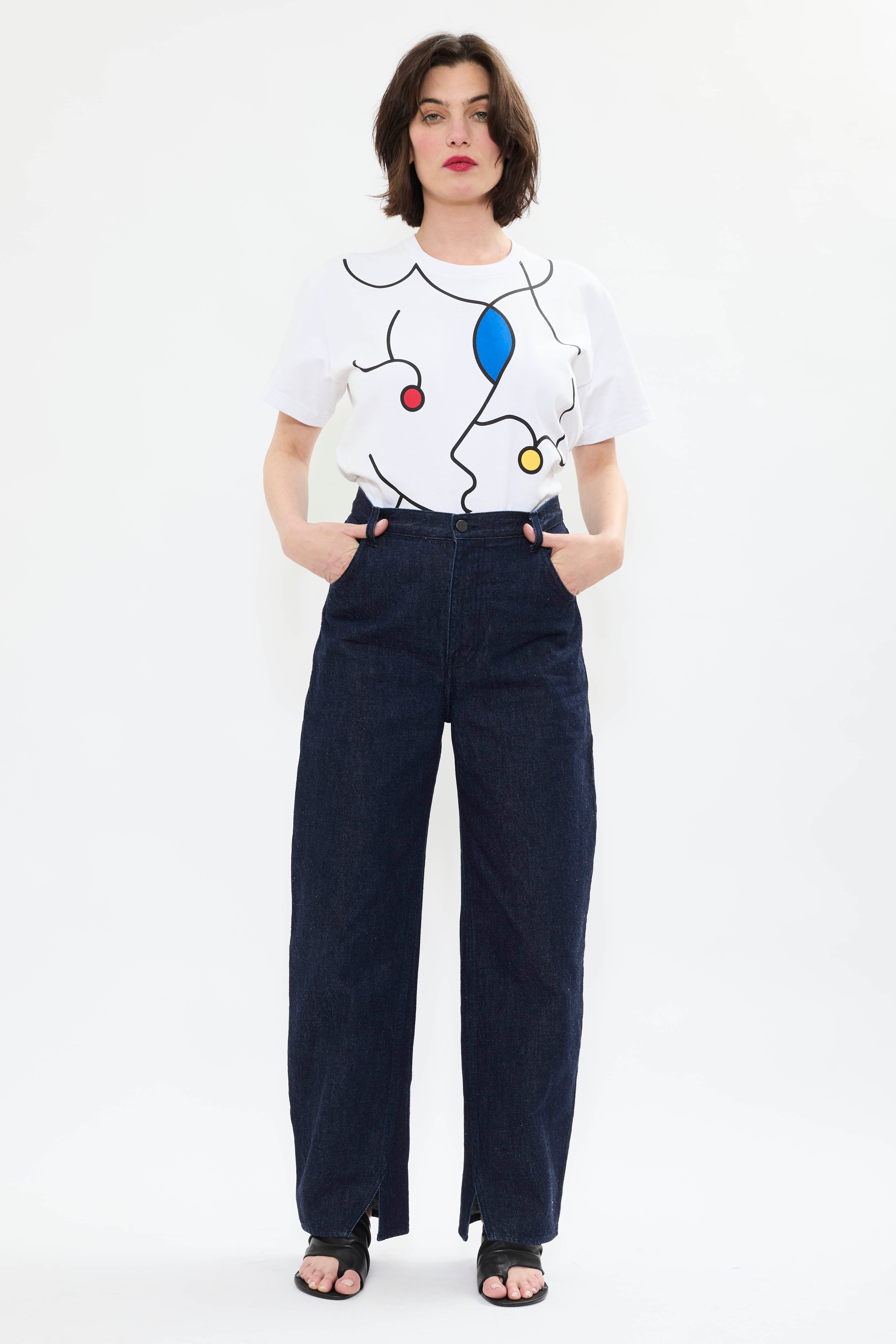 Cette ambiguïté a inspiré AYT Studio à imaginer des silhouettes décontractées, empreintes de liberté : dut tee-shirt imprimé femme, jusqu’à la robe tee-shirt imprimée. Un jean taille haute, aux lignes affirmées, vient compléter ces silhouettes décontractées mais pleines de caractère.